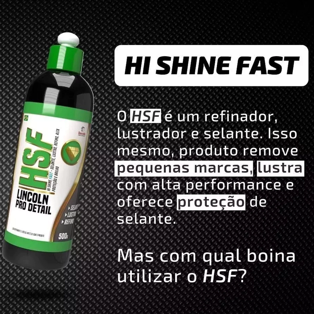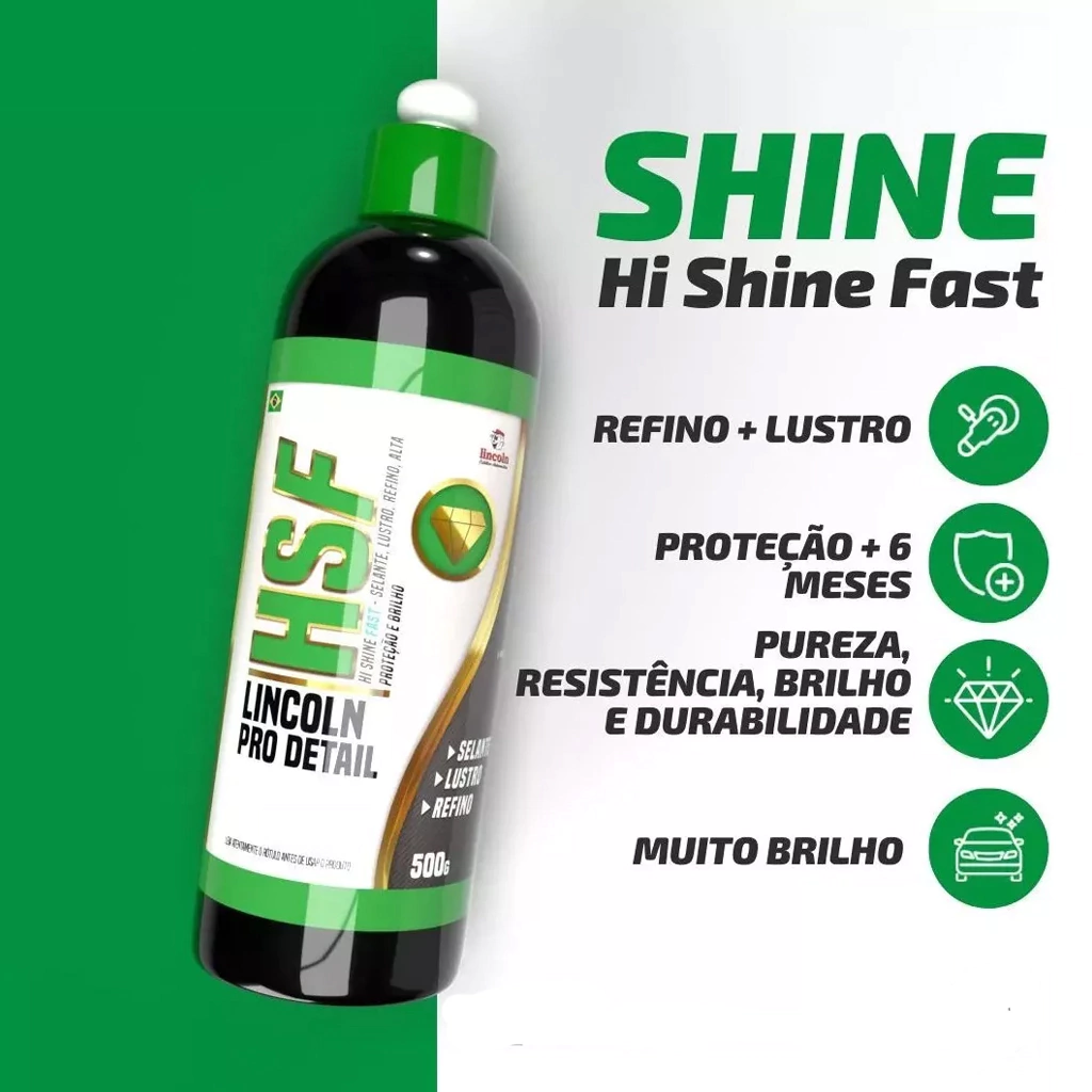O Hi Shine Fast (HSF) da Lincoln é um polidor de alta performance, ideal para quem busca acabamento superior e proteção duradoura em uma única aplicação. Este composto inovador combina lustrador, selante sintético e cera de carnaúba tipo 1, proporcionando um toque sedoso e um brilho intenso na pintura do veículo. Além de eliminar marcas leves e de boina, protege a superfície com uma película de alta resistência e longa durabilidade, com efeito que pode durar até 6 meses.