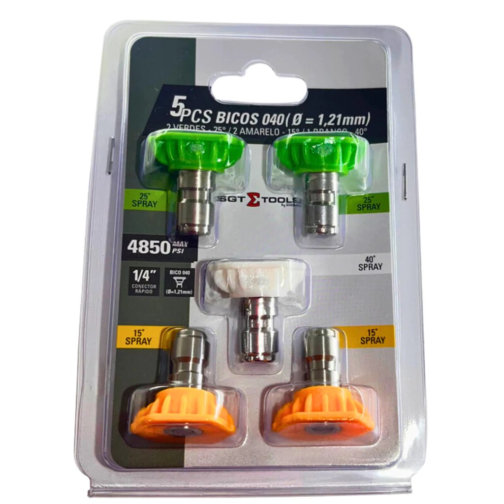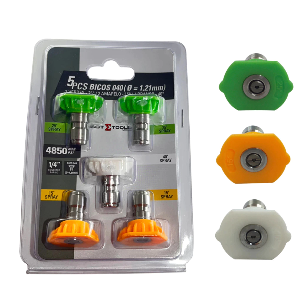 O Jogo de 5 Bicos 040 da Sigma Tools foi desenvolvido para proporcionar maior eficiência, precisão e versatilidade na lavagem com lavadoras de alta pressão. Ideal para profissionais que buscam resultados superiores, este kit oferece diferentes angulações para atender diversas necessidades de limpeza.