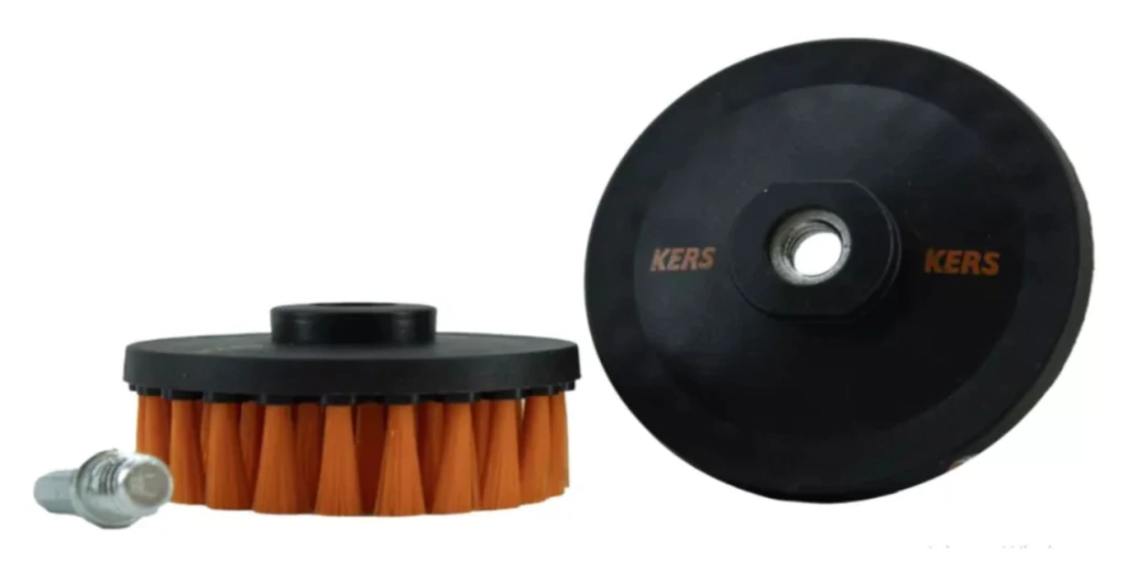 A Escova de Estofados CS Car Seat 2 em 1 Laranja Suave 4" Kers é uma ferramenta versátil e eficiente para limpeza de estofados, carpetes e bancos de couro. Desenvolvida para ser utilizada em politrizes rotativas com rosca 14mm, também acompanha parafuso adaptador para acoplamento em furadeiras e parafusadeiras.